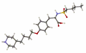 Tirofiban, sold under the brand name Aggrastat, is an antiplatelet medication. It belongs to a class of antiplatelets named glycoprotein IIb/IIIa inhibitors. Tirofiban is a small molecule inhibitor of the protein-protein interaction between fibrinogen and the platelet integrin receptor GP IIb/IIIa and is the first drug candidate whose origins can be traced to a pharmacophore-based virtual screening lead.[2][3]