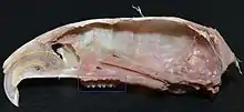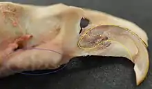 A skull of Ichthyornis discovered in 2014 suggests that the beak of birds may have evolved from teeth to allow chicks to escape their shells earlier, and thus avoid predators and also to penetrate protective covers such as hard earth to access underlying food.[42][43]