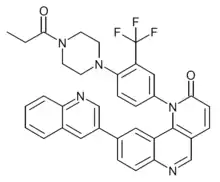 - Liu Q, Chang JW, Wang J, Kang SA, Thoreen CC, Markhard A, et al. (October 2010). "Discovery of 1-(4-(4-propionylpiperazin-1-yl)-3-(trifluoromethyl)phenyl)-9-(quinolin-3-yl)benzo[h][1,6]naphthyridin-2(1H)-one as a highly potent, selective mammalian target of rapamycin (mTOR) inhibitor for the treatment of cancer". Journal of Medicinal Chemistry. 53 (19): 7146–55. doi:10.1021/jm101144f. PMC 3893826. PMID 20860370.