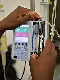 - Ohashi K, Dalleur O, Dykes PC, Bates DW (December 2014). "Benefits and risks of using smart pumps to reduce medication error rates: a systematic review". Drug Safety. 37 (12): 1011–1020. doi:10.1007/s40264-014-0232-1. PMID 25294653. S2CID 9308973.