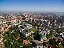 Transilvania University of Brașov (Romanian: Universitatea Transilvania din Brașov; UNITBV, also stylised UniTBv) is a higher education and research institution in Brașov, Romania which comprises 18 faculties, with a number of over 19,500 students and over 730 teaching staff members. Currently, Transilvania University of Brașov is the largest university in the centre of the country,[2] a university that offers programmes in fields such as: mechanical engineering, industrial engineering, computers, construction, forestry, wood engineering, product design, nutrition and tourism, computer science, mathematics, economics, medicine, pedagogy, music, literature and linguistics, law, sociology and social work, psychology. There are 100 undergraduate programmes in the University: 83 full-time study programmes, 6 part-time study programmes and 11 distance learning programmes, 74 master's degree study programmes (70 full-time and 4 part-time) and 18 doctoral fields (full-time and part-time).[3]