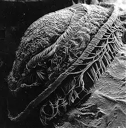 | Scanning electron micrograph of Trichodina on the gills of a mullet | |