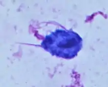 Trichomonas vaginalis, a parasitic protozoan, is the etiologic agent of trichomoniasis, and is a sexually transmitted infection.[3][8] More than 160 million people worldwide are annually infected by this protozoan.[3]