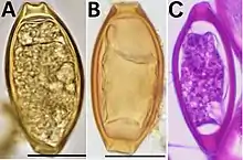 Eggs of Trichuris trichura. Image C shows HE stain.
