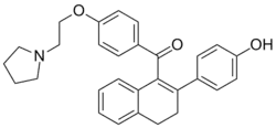 Trioxifene (INN) (developmental code name LY-133,314), or as the salt trioxifene mesylate (USAN), is a selective estrogen receptor modulator (SERM) with competitive binding activity against estradiol for the ERα and antagonistic activity against ERα-mediated gene expression, that was under preclinical and clinical development by Eli Lilly and Company for breast cancer and prostate cancer,[1] but was abandoned.[2]: 11 [3][4] Its affinity for the rat estrogen receptor was reported to be 20% relative to estradiol.[5][6]