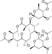 Troleandomycin (TAO for short[1]) is a macrolide antibiotic. It was sold in Italy (branded Triocetin) and Turkey (branded Tekmisin). It is no longer sold in Italy as of 2018.