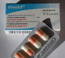 Vivotif - oral typhoid vaccine of live-attenuated S. enterica Typhi strain Ty21a