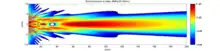 The beam pattern of a transducer can be determined by the active transducer area and shape, the ultrasound wavelength, and the sound velocity of the propagation medium. The diagrams show the sound fields of an unfocused and a focusing ultrasonic transducer in water, plainly at differing energy levels.