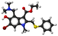 Umifenovir is used primarily as an antiviral treatment for influenza. The drug has also been investigated as a candidate drug for treatment of hepatitis C.[17]