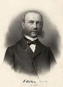 For a period of two years from 1840 Wilhelm Griesinger (1817–1868) worked as a medical assistant to Zeller at the Winnental Asylum.[5] While there, he adopted and adapted his senior colleague's model of a unitary psychosis.[5] He did not, however, shares Zeller's conviction regarding the nature of the human soul or character and its role in madness.[12] A convinced somaticist and commonly considered one of the founders of materialist psychiatry,[16] in the 1845 text which established him as one of the leading scientific psychiatrists of his era, Pathologie and Therapie der psychischen Krankheiten, he conceived of character, or "psychological tonus", as derived from the action of a postulated "psychic reflex action" (psychische Reflexaktion) produced by the stimulus of the accumulated representations (Vorstellungen) of the individual's life experience.[17] The concept of psychic reflex action was drawn by analogy from the physiological reflex action of the nervous system in response to a stimulus and he argued that both forms of reflex had the same mode of action and obeyed the same physical laws.[9] Mental illnesses occurred, he posited, when the system of psychic reflex action failed to function correctly and were either diminished, leading to melancholia, or accelerated, leading to mania.[9] His belief was that mental illness was a disease of the brain but that this in turn was caused by psychological factors.[18] His emphasis on the brain as the central site of mental illness has led to his association with the so-called Somatiker (somaticists) who had argued that the causes of mental illness were entirely physical whereas their opponents, the Psychiker, insisted that mental disorders were the result of psychological perversions, moral failings, or diseases of the soul (Seelenkrankheit).[17] As with Zeller, he postulated that melancholia constituted the primary form of mental illness which then passed to mania before terminating in dementia.[19] In his 1861 text Mental Pathology and Therapeutics Griesinger proposed a classificatory division of types of mental anomalies between those characterised by emotional disturbances and those characterised by disturbances in the intellectual and volitional functions.[1] He argued, based on his observation of cases, that the former condition preceded the latter where disorders of the intellect and will appeared "only as consequences and terminations" of disturbances of the emotions if "the cerebral affliction has not been cured".[20] These two categories thus constituted, for Griesigner, "the different forms [and] the different stages of one morbid process".[21] The general trajectory of this mental pathology tended towards "a constant progressive course, which may even proceed to complete destruction of the mental life".[22] Greisinger maintained his belief in unitary psychosis until the 1860s.[12]
