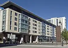 UCSF's Mission Bay Campus, also located in San Francisco, is the largest ongoing biomedical construction project in the world.[47] The 43-acre (17 ha) Mission Bay campus, opened in 2003 with construction still ongoing, contains additional research space and facilities to foster biotechnology and life sciences companies. It will double the size of UCSF's research enterprise over the next 10 years. The biotechnology company Genentech contributed $50 million toward construction of a building as part of a settlement regarding alleged theft of UCSF technology several decades earlier.[48]