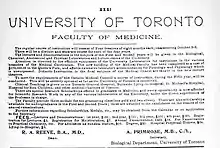 - "What medical school was recognized as among the "best on the continent" within 20 years of its opening?". History Q & A. University of Toronto Department of Public Affairs. 2002. Retrieved November 2, 2008.