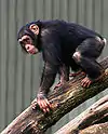 In primates, the upper limbs provide a wide range of movement which increases manual dexterity. The limbs of chimpanzees, compared to those of humans, reveal their different lifestyle. The chimpanzee primarily uses two modes of locomotion: knuckle-walking, a style of quadrupedalism in which the body weight is supported on the knuckles (or more properly on the middle phalanges of the fingers), and brachiation (swinging from branch to branch), a style of bipedalism in which flexed fingers are used to grasp branches above the head. To meet the requirements of these styles of locomotion, the chimpanzee's finger phalanges are longer and have more robust insertion areas for the flexor tendons while the metacarpals have transverse ridges to limit dorsiflexion (stretching the fingers towards the back of the hand). The thumb is small enough to facilitate brachiation while maintaining some of the dexterity offered by an opposable thumb. In contrast, virtually all locomotion functionality has been lost in humans while predominant brachiators, such as the gibbons, have very reduced thumbs and inflexible wrists. [14]