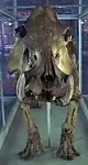 In ungulates the forelimbs are optimised to maximize speed and stamina to the extent that the limbs serve almost no other purpose. In contrast to the skeleton of human limbs, the proximal bones of ungulates are short and the distal bones long to provide length of stride; proximally, large and short muscles provide rapidity of step. The odd-toed ungulates, such as the horse, use a single third toe for weight-bearing and have significantly reduced metacarpals. Even-toed ungulates, such as the giraffe, uses both their third and fourth toes but a single completely fused phalanx bone for weight-bearing. Ungulates whose habitat does not require fast running on hard terrain, for example the hippopotamus, have maintained four digits. [14]
