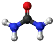 It is a colorless, odorless solid, highly soluble in water, and practically non-toxic (LD50 is 15 g/kg for rats).[6] Dissolved in water, it is neither acidic nor alkaline. The body uses it in many processes, most notably nitrogen excretion. The liver forms it by combining two ammonia molecules (NH3) with a carbon dioxide (CO2) molecule in the urea cycle. Urea is widely used in fertilizers as a source of nitrogen (N) and is an important raw material for the chemical industry.