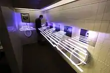 Urinals in a bathroom in the American Museum of Natural History.