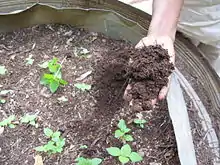 It can be beneficial to select the cover material carefully in order to not only cover the feces but also to inoculate them with beneficial soil microbes. In that case, finished compost could be used as cover material.[16]