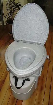 | Types | Single chamber or twin chamber; removable containers or not; 2-hole or 3-hole for anal hygiene[1] |