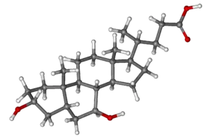 Ursodeoxycholic acid (UDCA), also known as ursodiol, is a secondary bile acid, produced in humans and most other species from metabolism by intestinal bacteria. It is synthesized in the liver in some species, and was first identified in bile of bears of genus Ursus, from which its name derived.[5] In purified form, it has been used to treat or prevent several diseases of the liver or bile ducts.