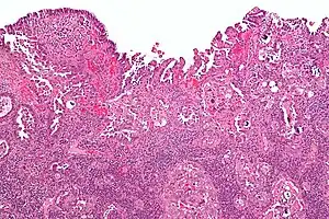 | Histology H&E of uterine serous papillary carcinoma. H&E stain. | |