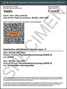 As of November 2021, all ten provinces in Canada, and two of the three territories, had implemented or announced plans to implement a provincially-regulated vaccine passport.[95]