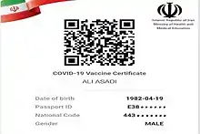 According to Minister of health and education requires passport number, Iranian national ID card code for issuing vaccine digital foreign travel card.[46]