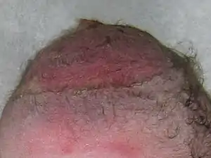 ![]() A baby's scalp showing the effects of a vacuum extraction (chignon). The effects were gone a week later. | |