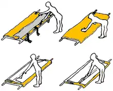 - The patient is more easily transported short distances provided sufficient team members (typically six) are available, and in confined spaces compared to a conventional stretcher.