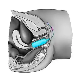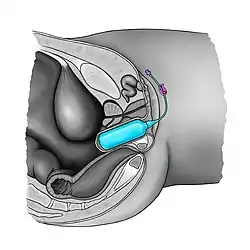 A vaginal dilator (sometimes called a vaginal trainer)[1] is an instrument used to gently stretch the vagina. They are used when the vagina has become narrowed (vaginal stenosis), such as after brachytherapy for gynecologic cancers,[2] and as therapy for vaginismus and other forms of dyspareunia.[3]