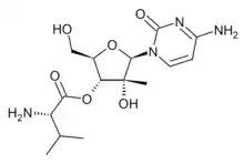 Valopicitabine (NM-283) is an antiviral drug which was developed as a treatment for hepatitis C, though only progressed as far as Phase III clinical trials. It acts as a RNA-dependent RNA polymerase inhibitor. It is a prodrug which is converted inside the body to the active form, 2'-C-methylcytidine triphosphate.[1][2][3][4][5]