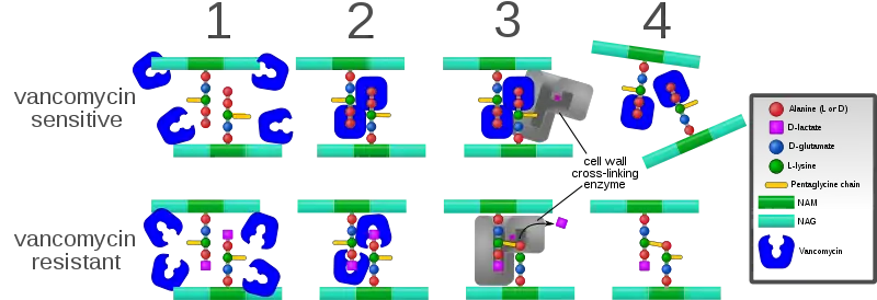 - Pootoolal J, Neu J, Wright GD (2002). "Glycopeptide antibiotic resistance". Annual Review of Pharmacology and Toxicology. 42: 381–408. doi:10.1146/annurev.pharmtox.42.091601.142813. PMID 11807177.