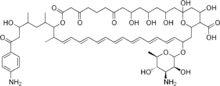 • Nc1ccc(cc1)C(=O)CC(O)C(C)CC(C)C3OC(=O)CC(=O)CCCC(=O)CC(O)CC(O)CC(O)CC4(O)CC(O)C(C(=O)O)C(CC(OC2O[C@H](C)[C@@H](O)[C@H](N)[C@@H]2O)C=CC=CC=CC=CC=CC=CC=CC3C)O4