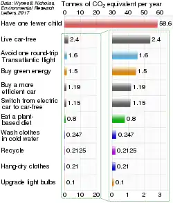 292. Carrington, Damian (31 May 2018). "Avoiding meat and dairy is 'single biggest way' to reduce your impact on Earth". The Guardian. Retrieved 12 March 2019. A vegan diet is probably the single biggest way to reduce your impact on planet Earth, not just greenhouse gases, but global acidification, eutrophication, land use and water use. It is far bigger than cutting down on your flights or buying an electric car