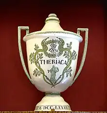 Theriac or theriaca is a medical concoction originally labelled by the Greeks in the 1st century AD and widely adopted in the ancient world as far away as Persia, China and India via the trading links of the Silk Route.[1] It was an alexipharmic, or antidote, considered a panacea,[2] for which it could serve as a synonym: in the 16th century Adam Lonicer wrote that garlic was the rustic's theriac or Heal-All.[3]