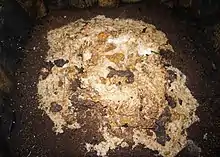 Vermifilters are a type of wastewater treatment biofilter or trickling filter, but with the addition of earthworms to improve treatment efficiency.[4] Vermifilters provide an aerobic environment and wet substrate that facilitates microorganism growth as a biofilm. Microorganisms perform biochemical degradation of organic matter present in wastewater. Earthworms regulate microbial biomass and activity by directly or/and indirectly grazing on microorganisms.[5] Biofilm and organic matter consumed by composting earthworms is then digested into biologically inert castings (humus).[6] The vermicast is incorporated into the media substrate, slowly increasing its volume. When this builds up, it can be removed and applied to soil as an amendment to improve soil fertility and structure.