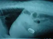 A variety of non-edible objects are commonly swallowed by dogs, cats, and cattle. These foreign bodies can cause obstruction of the gastrointestinal tract causing severe vomiting and resulting electrolyte imbalances. The stomach (gastrotomy) or intestine (enterotomy) can be surgically opened to remove the foreign body. Necrotic intestine can be removed (enterectomy) and repaired with intestinal anastomosis. Foreign bodies can also be removed by endoscopy, which although requires general anesthesia does not require surgery and significantly decreases recovery time.[20] However, endoscopic foreign body retrieval is anatomically limited to objects lodged in the esophagus, the stomach or the colon. The condition in cattle is known as hardware disease.