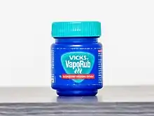 Vicks VapoRub is a mentholated topical ointment, part of the Vicks brand of over-the-counter medications owned by the American consumer goods company Procter & Gamble. VapoRub is intended for use on the chest, back and throat for cough suppression or on muscles and joints for minor aches and pains. Users of VapoRub often apply it immediately before sleep.