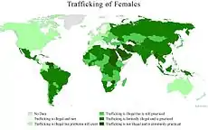 Human trafficking refers to the acquisition of persons by improper means such as force, fraud or deception, with the aim of exploiting them.[60] The Protocol to Prevent, Suppress and Punish Trafficking in Persons, especially Women and Children states,[61]