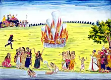 Widows have been subjected to forced remarriage called widow inheritance, where she is forced to marry a male relative of her late husband.[124] Another practice is banned remarriage of widows, such as was legal in India[125] and Korea.[126] A more extreme version is the ritual killing of widows as was seen in India and Fiji. Sati is the burning of widows and although sati in India is today an almost defunct practice, isolated incidents have occurred in recent years, such as the 1987 sati of Roop Kanwar, as well as several incidents in rural areas in 2002,[127] and 2006.[128] A traditional idea upheld in some places in Africa is that an unmarried widow is unholy and “disturbed” if she is unmarried and abstains from sex for some period of time. This fuels the practice of widow cleansing where the unmarried widow is required to have sexual intercourse as a form of ritual purification and is commenced with a ceremony for the neighborhood to witness that she is now purified.[129]