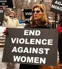 The UN Declaration on the Elimination of Violence Against Women states, "violence against women is a manifestation of historically unequal power relations between men and women" and "violence against women is one of the crucial social mechanisms by which women are forced into a subordinate position compared with men."[5]