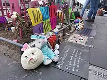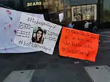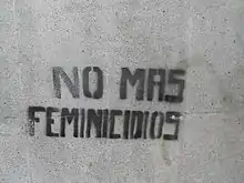 Activists painted slogans on historically significant monuments, buildings, and paintings to advocate for women. This was done in an effort to demonstrate the governments overemphasis on inanimate objects, rather than on the lives of women and girls. These acts sparked a topic of conversation concerning the different values that are placed on humans and on monuments with patriotic ties.[121] In addition, the UN Women, National Citizen Observatory on Femicide, and Católicas por el Derecho a Decidir opened the first permanent exhibition on femicides in Mexico in 2017; the exhibition is called "¡Ya basta!", which is located in the Museum of Memory and Tolerance in Mexico City.[9]