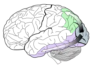 The lateral geniculate nucleus sends signals to primary visual cortex, also called striate cortex. Extrastriate cortex, also called visual association cortex is a set of cortical structures, that receive information from striate cortex, as well as each other.[2] Recent descriptions of visual association cortex describe a division into two functional pathways, a ventral and a dorsal pathway. This conjecture is known as the two streams hypothesis.