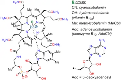 97. Giedyk M, Goliszewska K, Gryko D (June 2015). "Vitamin B12 catalysed reactions". Chemical Society Reviews. 44 (11): 3391–3404. doi:10.1039/C5CS00165J. PMID 25945462.