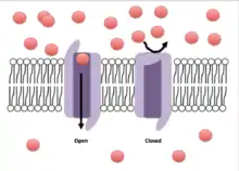 Voltage-gated ion channels are a class of transmembrane proteins that form ion channels that are activated by changes in the electrical membrane potential near the channel. The membrane potential alters the conformation of the channel proteins, regulating their opening and closing. Cell membranes are generally impermeable to ions, thus they must diffuse through the membrane through transmembrane protein channels. They have a crucial role in excitable cells such as neuronal and muscle tissues, allowing a rapid and co-ordinated depolarization in response to triggering voltage change. Found along the axon and at the synapse, voltage-gated ion channels directionally propagate electrical signals. Voltage-gated ion-channels are usually ion-specific, and channels specific to sodium (Na+), potassium (K+), calcium (Ca2+), and chloride (Cl−) ions have been identified.[1] The opening and closing of the channels are triggered by changing ion concentration, and hence charge gradient, between the sides of the cell membrane.[2]