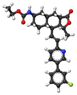 Vorapaxar (brand name Zontivity, formerly known as SCH 530348) is a thrombin receptor (protease-activated receptor, PAR-1) antagonist based on the natural product himbacine, discovered by Schering-Plough and developed by Merck & Co.[2]