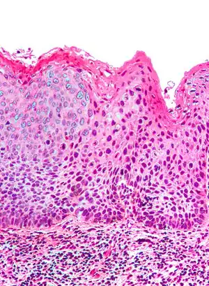 Micrograph of differentiated vulvar intraepithelial neoplasia. H&E stain.
