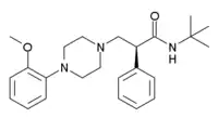 2. Cliffe IA, Brightwell CI, Fletcher A, et al. (May 1993). "(S)-N-tert-butyl-3-(4-(2-methoxyphenyl)-piperazin-1-yl)-2-phenylpropanamide [(S)-WAY-100135]: a selective antagonist at presynaptic and postsynaptic 5-HT1A receptors". Journal of Medicinal Chemistry. 36 (10): 1509–10. doi:10.1021/jm00062a028. PMID 8496920.