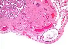 - Ogawa K, Johansson SL, Cohen SM (October 1999). "Immunohistochemical analysis of uroplakins, urothelial specific proteins, in ovarian Brenner tumors, normal tissues, and benign and neoplastic lesions of the female genital tract". Am. J. Pathol. 155 (4): 1047–50. doi:10.1016/S0002-9440(10)65206-6. PMC 1867018. PMID 10514386.