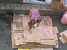 Many terms are used to refer to people who salvage recyclables from the waste stream for sale or personal consumption. In English, these terms include rag picker, reclaimer, informal resource recoverer, binner, recycler, poacher, salvager, scavenger, and waste picker; in Spanish cartonero, chatarrero, pepenador, clasificador, minador and reciclador; and in Portuguese catador de materiais recicláveis.[6] A more contemporary term, focusing on the outcome of the professional activity, is "informal sector recycling". However, the word "informal" can be partly misleading, because in practice a continuum between total informality and proper organization in taxed registered formal activities may be encountered.