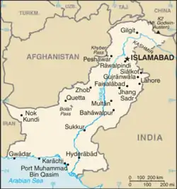 {{cite journal}}: Cite journal requires|journal=(help) - It is likely that in this case, the federal government is meant; see: Government of Pakistan. Ministry of Water and Power (October 2002). "Pakistan Water Sector Strategy. Water Sector Profile. Volume 5" (PDF): 105. Archived from the original (PDF) on 2006-12-31. Retrieved 2008-05-29.
